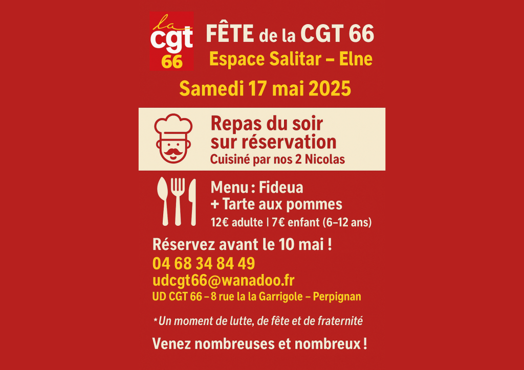 Fête de la CGT 66 à Elne – Réservez votre repas pour le 17 mai !